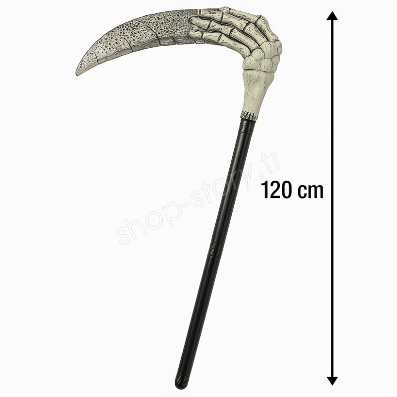 Apportez une touche terrifiante à votre déguisement avec cette grande faux de 120 cm au design réaliste et à la main de squelette finement détaillée.