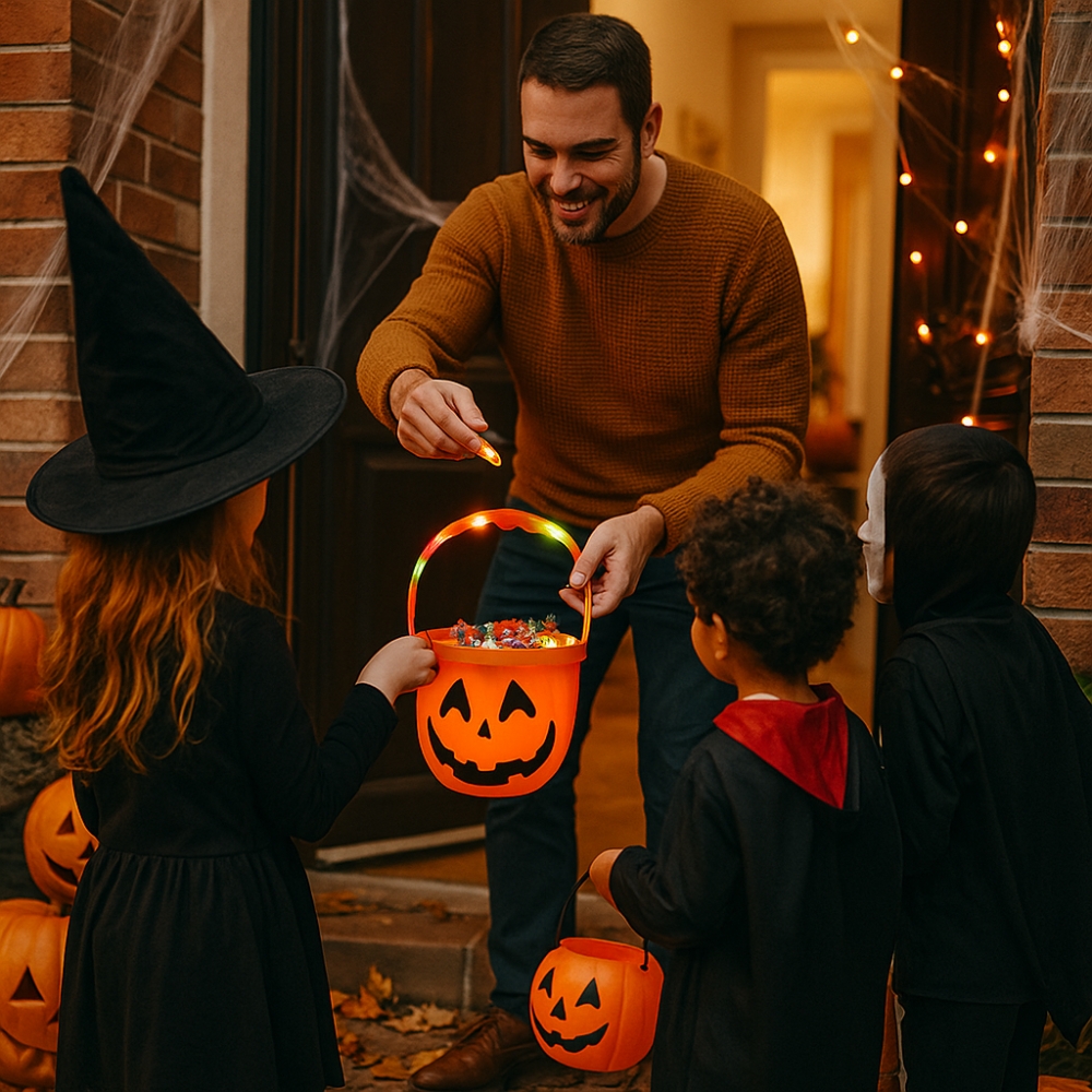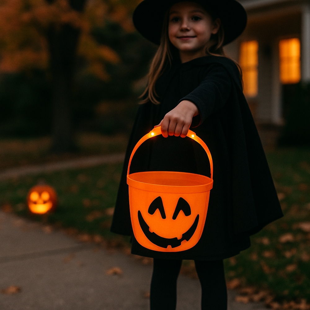 Léger et résistant, il est parfaitement adapté aux enfants. Sa anse lumineuse à LED apporte une touche décorative originale tout en améliorant la visibilité dans l’obscurité. Parfait pour la chasse aux bonbons comme pour la décoration d’Halloween, en intérieur ou en extérieur.