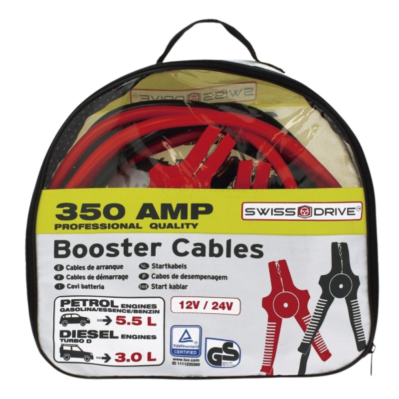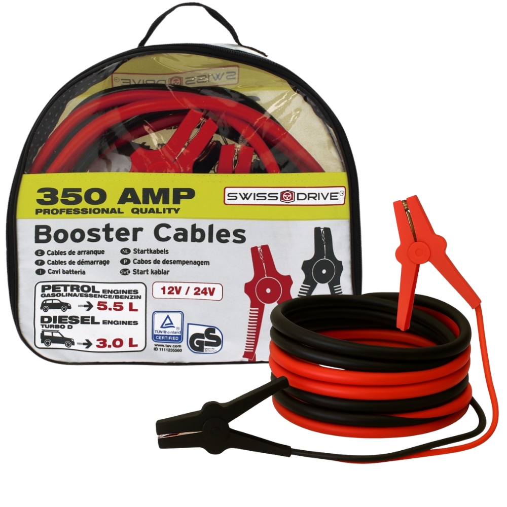 Conçus pour offrir une puissance de démarrage élevée et une utilisation sécurisée, les câbles de démarrage SWISS DRIVE 350A associent des spécifications techniques robustes à une conception adaptée aux motorisations essence et diesel, pour un usage de dépannage fiable.