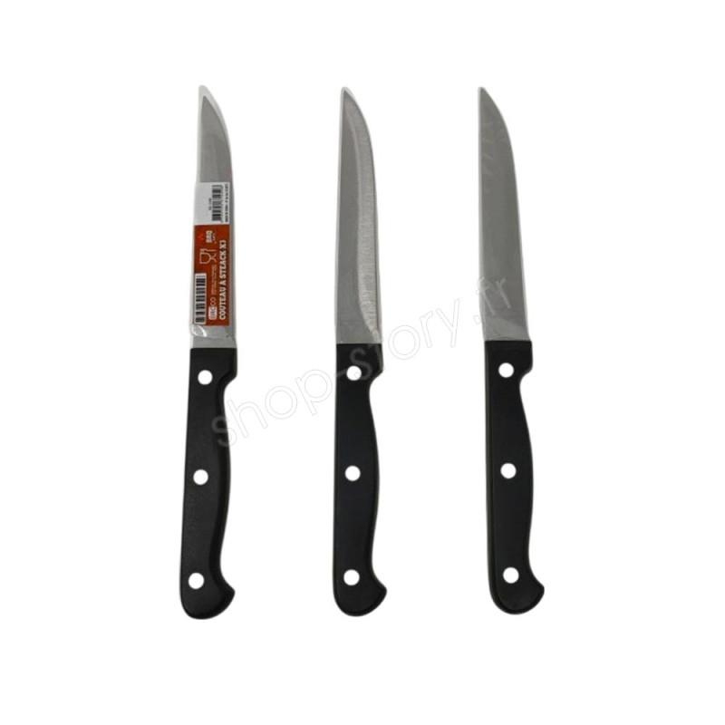 Apportez une touche de raffinement à votre table avec ce lot de 3 couteaux à steak en acier inoxydable, spécialement conçus pour offrir une découpe nette et sans effort.