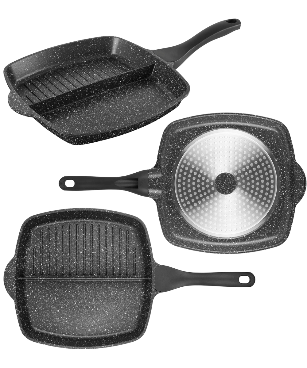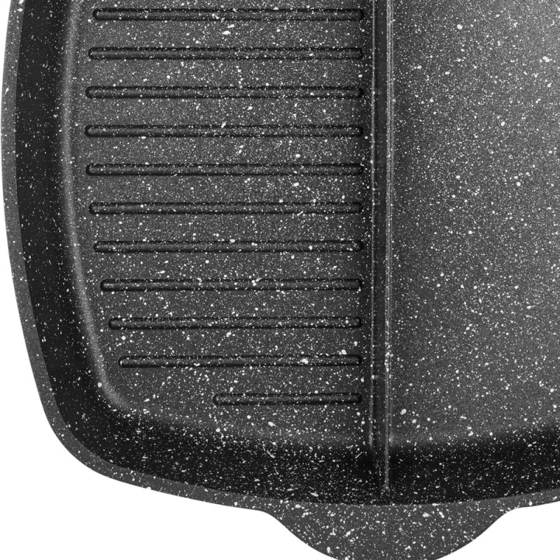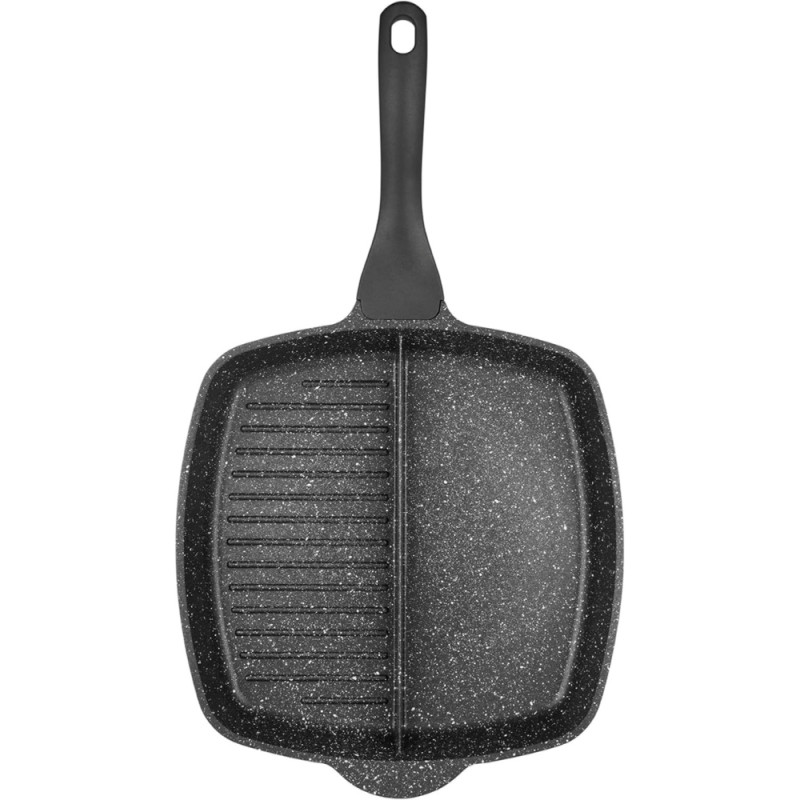 Poêle 2 sections 26x26cm pour frire et griller simultanément vos aliments sans les mélanger.