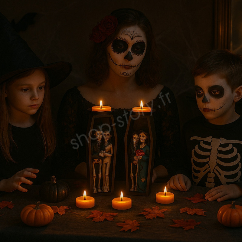 Couleur : noir avec squelettes, tenues colorées aléatoires