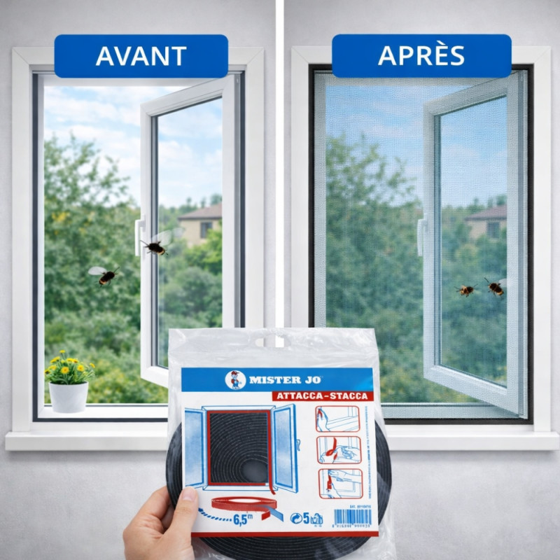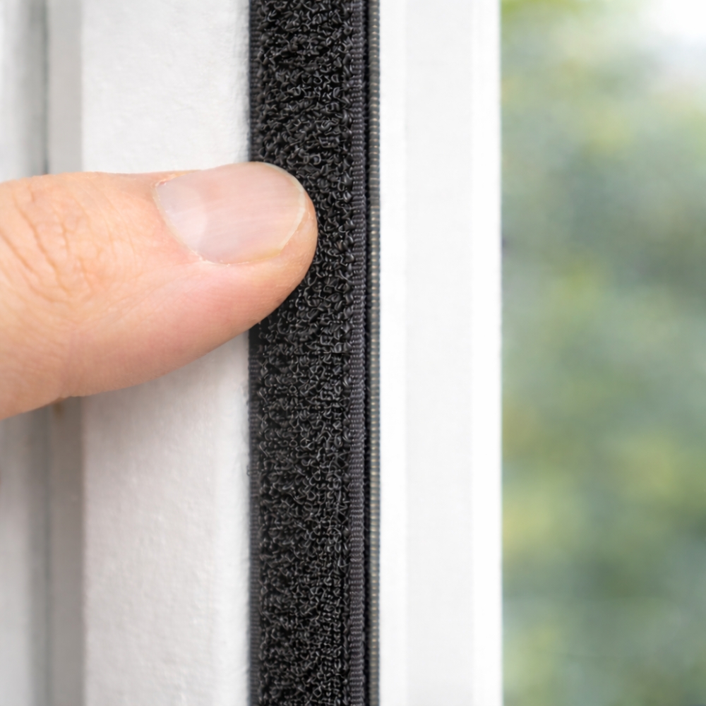Équipée d’un système auto-agrippant de type scratch, cette bande assure un maintien efficace de la moustiquaire tout en facilitant son ouverture, son retrait ou son repositionnement si nécessaire. Elle offre une adhérence stable et durable, parfaitement adaptée à une utilisation régulière pendant les périodes chaudes. Que ce soit pour une fenêtre de chambre, de cuisine, de salon ou une porte, elle permet de garder la moustiquaire bien en place tout en conservant une utilisation pratique au quotidien.