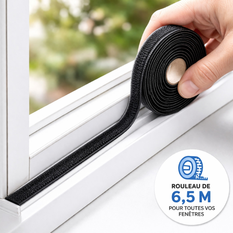 Avec sa longueur généreuse de 6,5 m, cette bande scratch s’adapte à de nombreux besoins d’installation. Elle peut être facilement découpée à la taille souhaitée afin de convenir à différents formats de fenêtres, baies ou ouvertures. Vous réalisez ainsi une pose personnalisée, nette et précise, selon les dimensions exactes de votre moustiquaire. Cette grande flexibilité en fait un accessoire particulièrement pratique pour les projets sur mesure, à la maison comme dans un logement saisonnier.