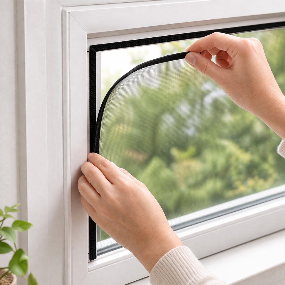 Contrairement à des systèmes de fixation définitifs ou jetables, cette bande à scratch permet de retirer et de remettre la moustiquaire en toute simplicité. Elle constitue donc une solution durable et économique, idéale pour une utilisation saisonnière. Vous pouvez démonter votre moustiquaire en fin d’été puis la réinstaller plus tard sans devoir tout remplacer. Cette fonctionnalité réutilisable est particulièrement appréciée pour l’entretien, le nettoyage ou le rangement, tout en prolongeant la durée d’utilisation de votre installation.