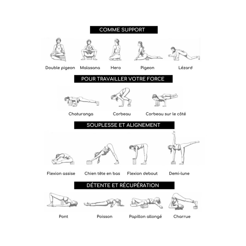 Ces briques sont idéales pour le yoga, le pilates, le stretching, la méditation, mais aussi pour la rééducation douce ou les exercices de mobilité.