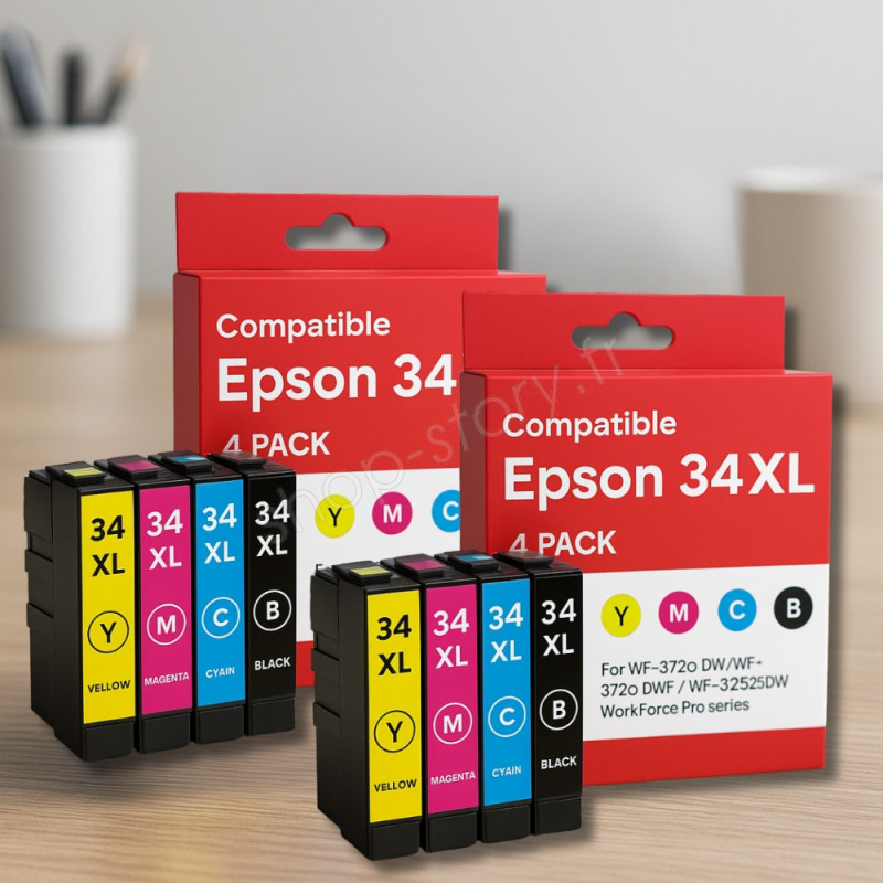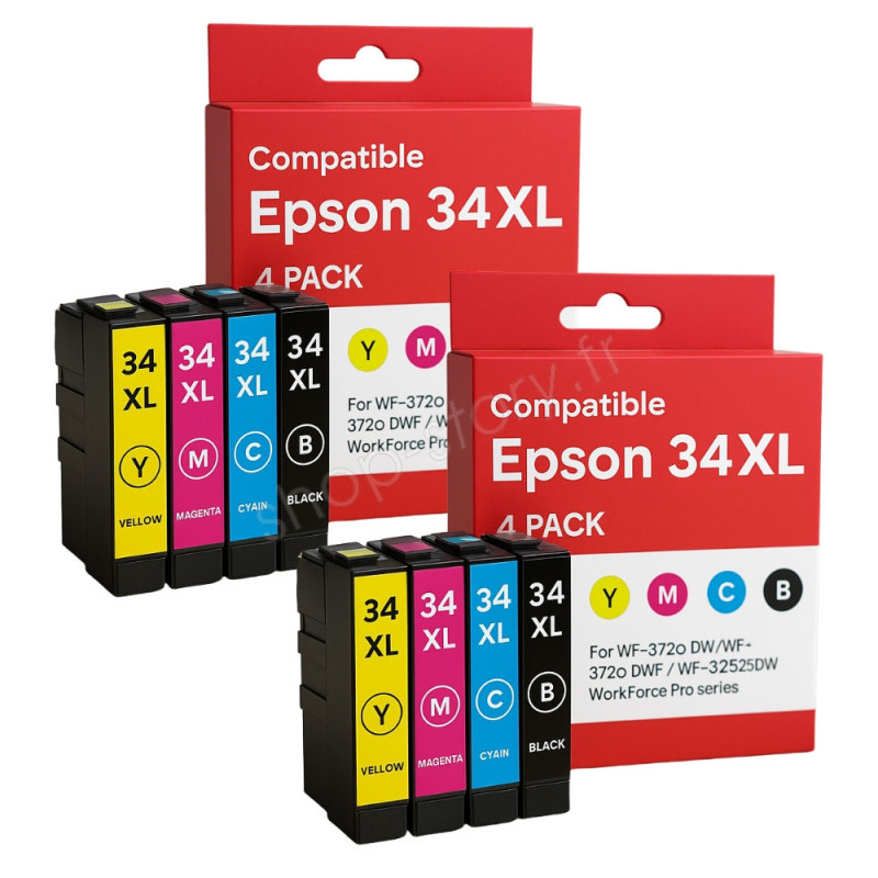 Offrez à votre imprimante Epson toute la puissance d’impression qu’elle mérite avec le pack de cartouches compatibles Epson 34XL.
