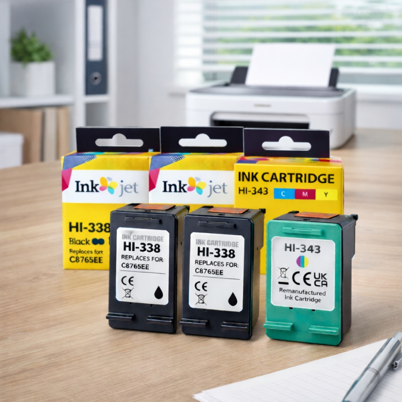 Le pack de cartouches compatibles HP 338 et 343 vous offre une solution pratique et économique pour toutes vos impressions du quotidien. Idéal pour les documents administratifs comme pour les photos, il garantit un noir profond et des couleurs éclatantes pour un rendu professionnel. Disponible en version standard avec 1 cartouche noire et 1 cartouche couleur pour un usage standard, ou en pack de 3 cartouches (2 noires et 1 couleur) pour les volumes d’impression plus importants, ce pack s’adapte à votre rythme tout en optimisant vos coûts. Une alternative fiable pour imprimer plus, en toute sérénité.