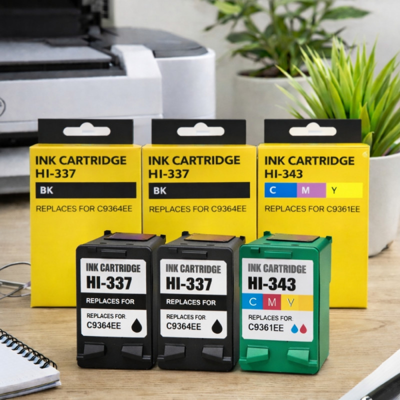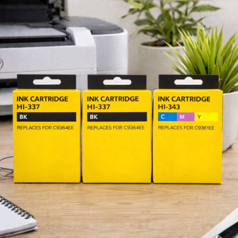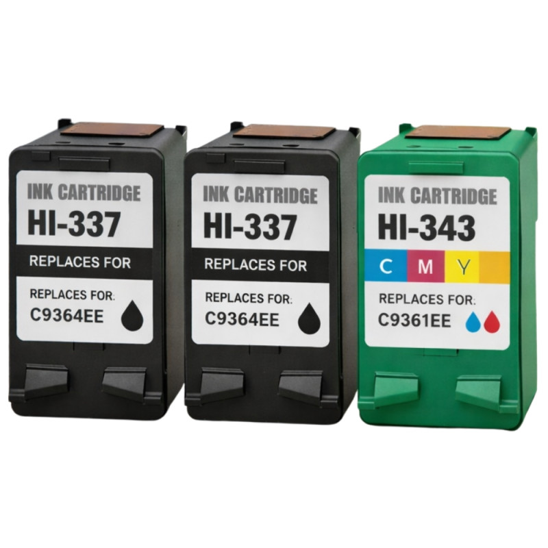 La cartouche 337 noir produit un noir profond et précis, idéal pour les documents administratifs, rapports, factures ou supports professionnels. La cartouche 343 couleur, intégrant les encres cyan, magenta et jaune, assure des teintes équilibrées et lumineuses pour vos photos, graphiques et présentations.