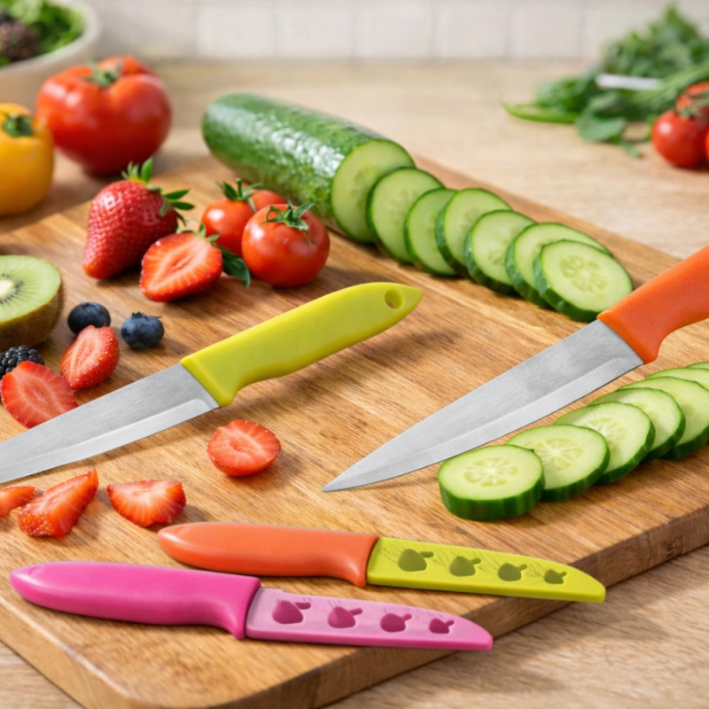 Les étuis protecteurs en forme de pomme constituent un véritable atout différenciant. Ils protègent efficacement les lames contre les chocs, prolongent leur durée de vie et réduisent considérablement les risques de coupures lors du rangement ou du transport. Leur design ludique et original renforce l’attrait visuel du produit tout en assurant une sécurité optimale, notamment dans les foyers avec enfants.