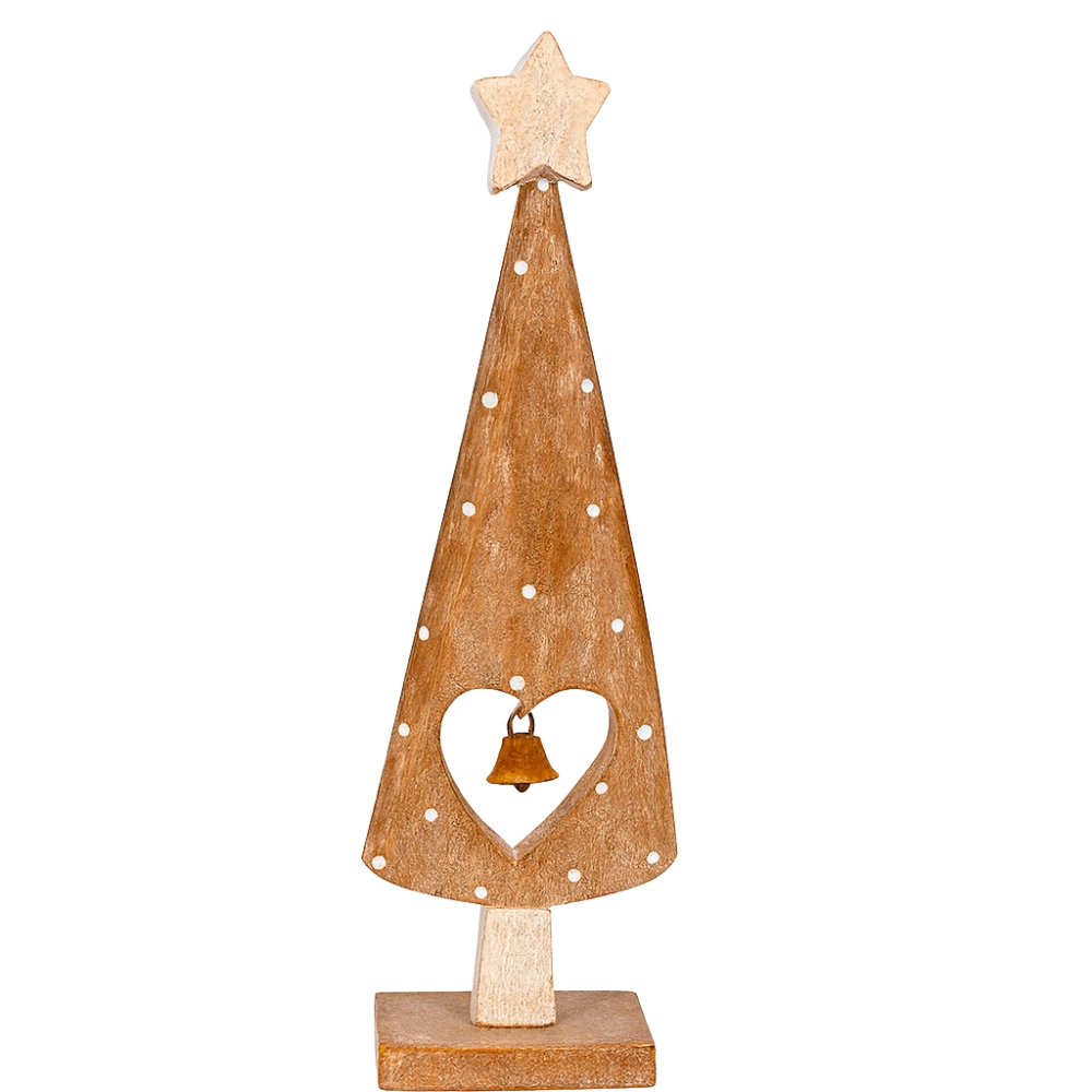 Sapin Décoratif en Bois Naturel avec Cœur Ajouré et Clochette