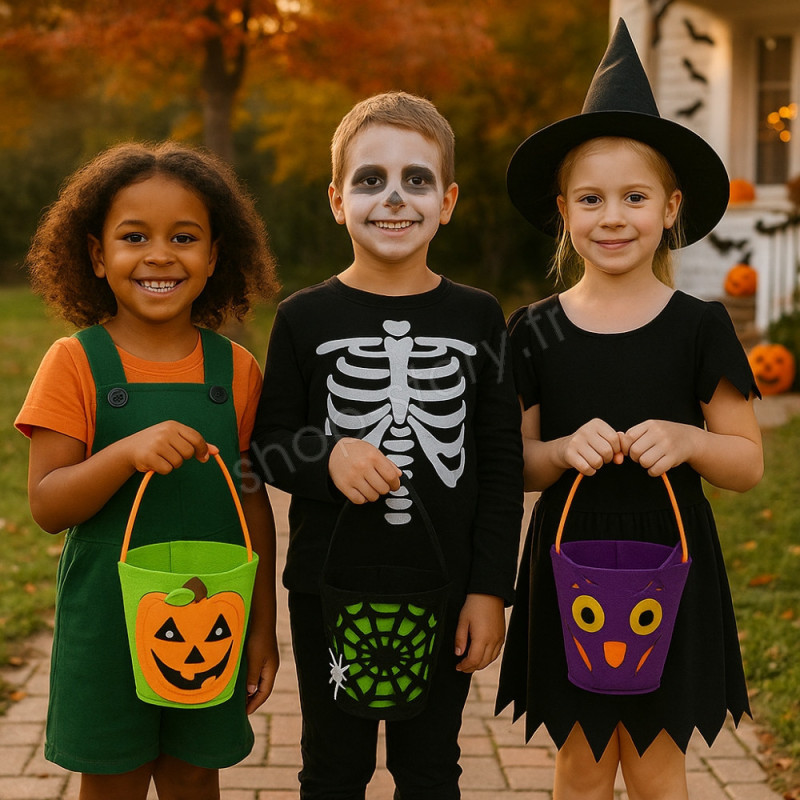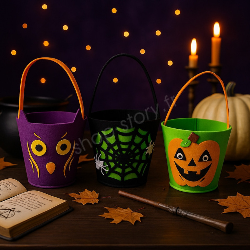 Alliant design amusant, matière résistante et format pratique pour les enfants, ils sont parfaits pour collecter des friandises, décorer vos fêtes ou compléter un déguisement. Réutilisables, ils combinent style, durabilité et utilité.