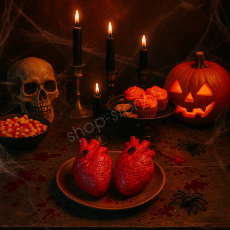 Leur couleur rouge profond et leurs reliefs texturés captent la lumière pour un rendu réaliste sous n’importe quel éclairage — qu’il s’agisse d’une soirée costumée, d’une vitrine thématique, ou d’un plateau photo horrifique. Faciles à manipuler, ils peuvent être posés sur une table ensanglantée, tenus à la main, ou intégrés dans une mise en scène théâtrale pour un effet de choc garanti.
