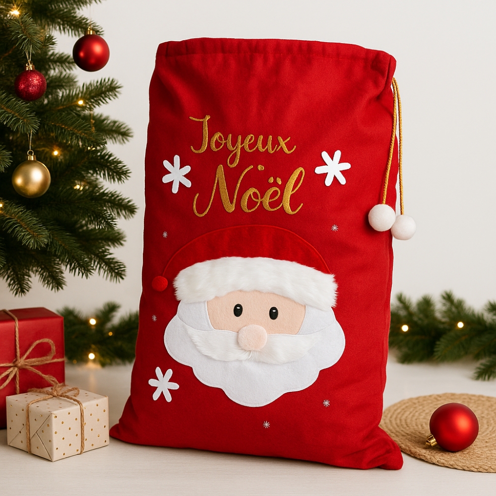 Léger, souple et facile à ranger une fois les fêtes terminées, ce sac de Noël séduira autant les enfants que les adultes. De plus, son style traditionnel et ludique en fait un cadeau idéal en lui-même : un emballage original, réutilisable et écologique, qui remplace avantageusement les papiers jetables. Avec cette hotte, chaque ouverture de cadeau devient un moment unique, chargé d’émerveillement.