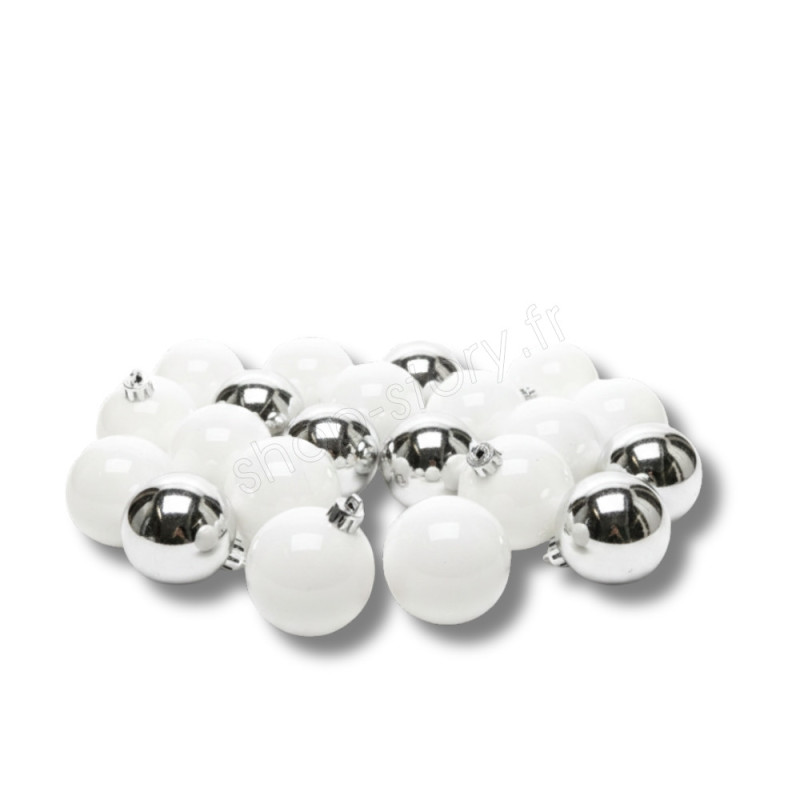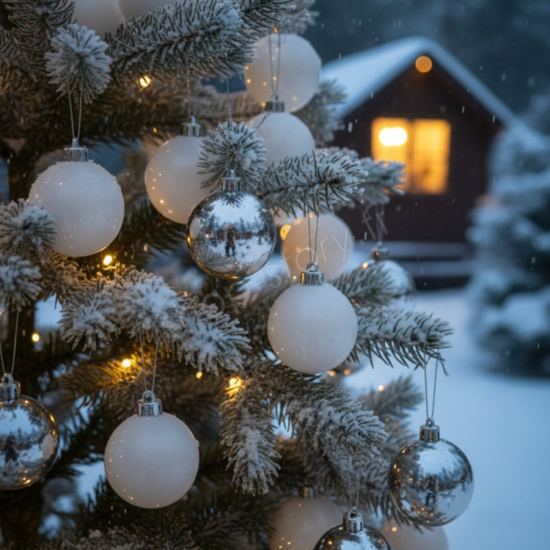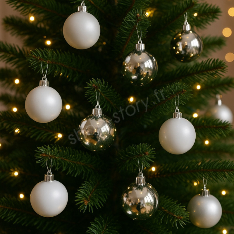 Le duo blanc & argent est un choix haut de gamme, souvent utilisé dans les décorations professionnelles (boutiques, vitrines, hôtels) pour évoquer une ambiance polaire, nordique et féerique. Ces boules peuvent être utilisées dans de nombreuses mises en scène : sapin traditionnel, sapin minimaliste, table festive de Noël, centre de table, guirlandes, compositions décoratives, vases transparents décoratifs ou encore couronnes de porte. Elles s’adaptent parfaitement à tous les styles, du plus moderne au plus traditionnel.