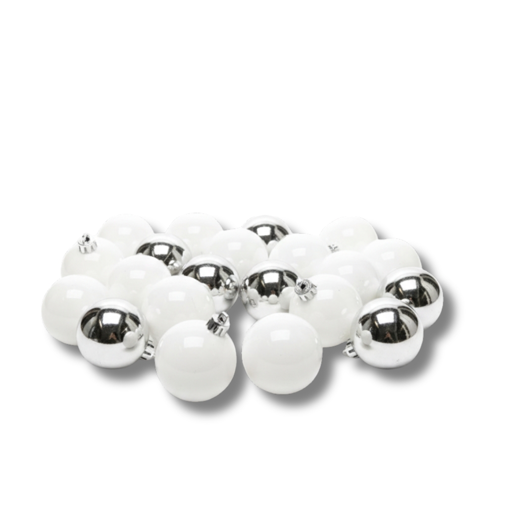 Ces 24 boules blanc et argent incarnent une décoration de Noël pensée pour ceux qui recherchent à la fois élégance, simplicité et enchantement. Leur design harmonieux combine le blanc mat, symbole de neige et de pureté, et l’argent brillant, rappelant les reflets scintillants des fêtes de Noël et des lumières douces de saison. Conçues en plastique résistant, elles sont incassables, ce qui leur confère une durabilité exceptionnelle et permet une utilisation en toute sécurité dans les foyers animés, même avec des enfants ou des animaux.