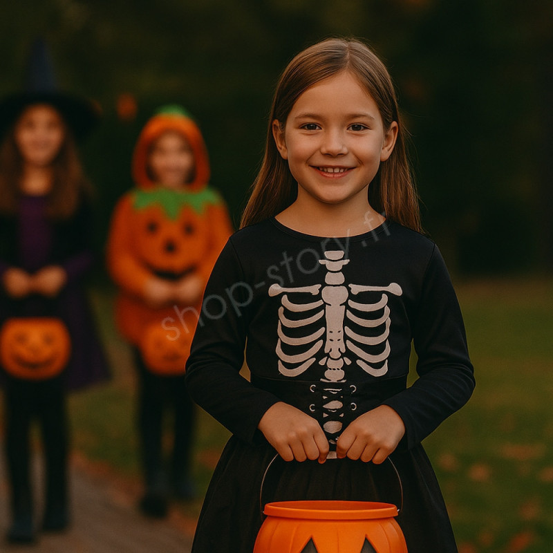 Ce déguisement est idéal pour les soirées d’Halloween, spectacles scolaires, carnavals ou fêtes déguisées, mais aussi pour des séances photo thématiques ou des anniversaires originaux. Il permet aux enfants d’incarner un personnage emblématique de la saison d’Halloween avec style, assurance et confort.