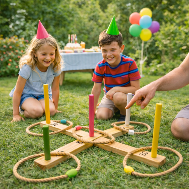 Le jeu de lancer d’anneaux en bois est une activité incontournable pour profiter pleinement des moments en plein air. Facile à installer et à prendre en main, ce jeu d’extérieur se pratique aussi bien dans le jardin, sur une terrasse, dans un parc ou pendant les vacances. Son principe simple permet à toute la famille, enfants comme adultes, de participer et de partager un moment ludique et convivial.