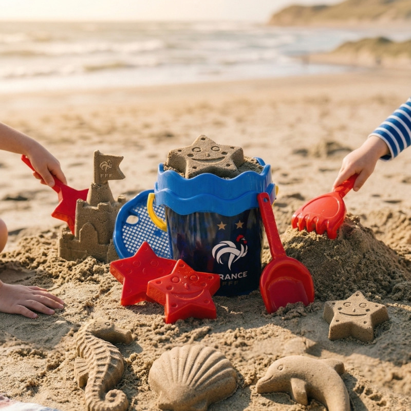 Ce seau de plage est un produit officiel sous licence de la Fédération Française de Football, ce qui garantit un design authentique et fidèle aux couleurs de l’Équipe de France. Les enfants peuvent ainsi jouer tout en affichant leur passion pour les Bleus. Le célèbre coq et les étoiles rappellent l’univers du football français et créent une connexion émotionnelle avec les jeunes supporters. Cela transforme un simple jeu de plage en un objet symbolique et valorisant. Les enfants aiment souvent reproduire l’univers des adultes et des sportifs qu’ils admirent. Avec ce seau, ils peuvent combiner leur passion pour le jeu et leur amour du sport. C’est également un produit idéal pour les fans de football qui souhaitent partager leur passion avec leurs enfants.