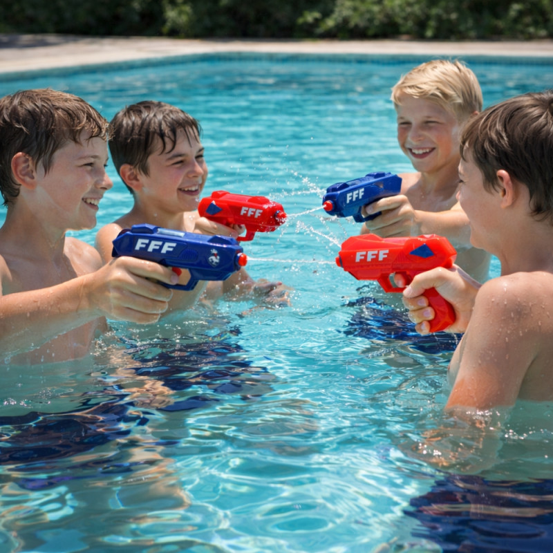 Conçus pour offrir simplicité d’utilisation et plaisir immédiat, ces pistolets à eau combinent un design compact, une bonne prise en main et une fabrication robuste. Leur mécanisme simple permet un remplissage rapide et un jet d’eau efficace, idéal pour les jeux en extérieur.