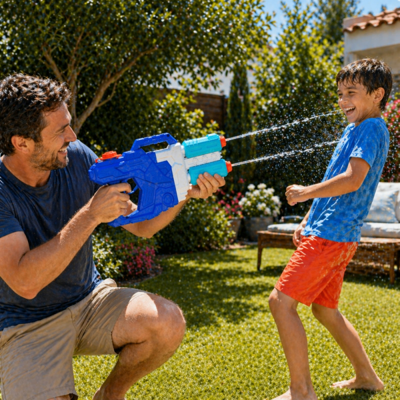 Ce pistolet à eau est idéal pour les enfants, adolescents et adultes, favorisant les jeux en groupe, les activités en extérieur et les moments de partage en famille ou entre amis. Il encourage l’activité physique tout en offrant une alternative ludique pour se rafraîchir pendant les fortes chaleurs estivales.
