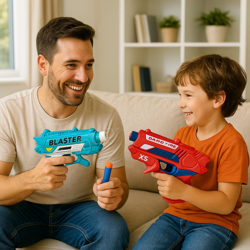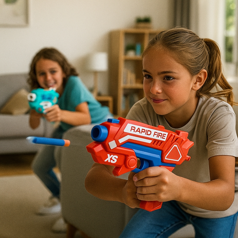 La puissance de propulsion a été spécialement calibrée : assez forte pour offrir un tir précis, mais parfaitement adaptée aux environnements intérieurs où la sécurité est primordiale. Les enfants peuvent ainsi jouer, viser et bouger librement, sans risque de blessure ou de choc désagréable. Pour les parents, c’est l’assurance d’un jeu totalement maîtrisé, qui offre plaisir, stimulation et sérénité.