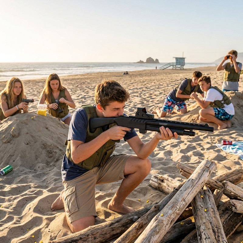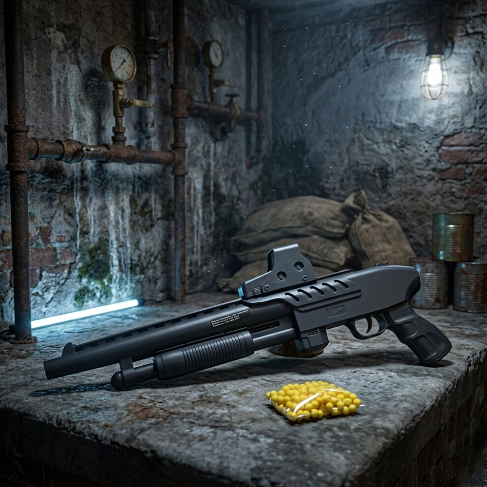 Ce fusil à pompe à billes de 44 cm est une réplique ludique conçue pour le divertissement et le tir de précision sur cible. Facile à utiliser, compact et fourni avec des billes, il constitue un excellent choix pour les amateurs de jeux de tir récréatif recherchant un modèle simple et agréable à manipuler.