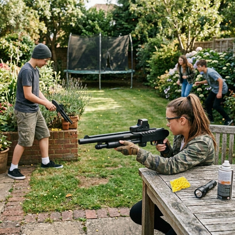 - Contenu du pack : 1 fusil à pompe + 18 billes