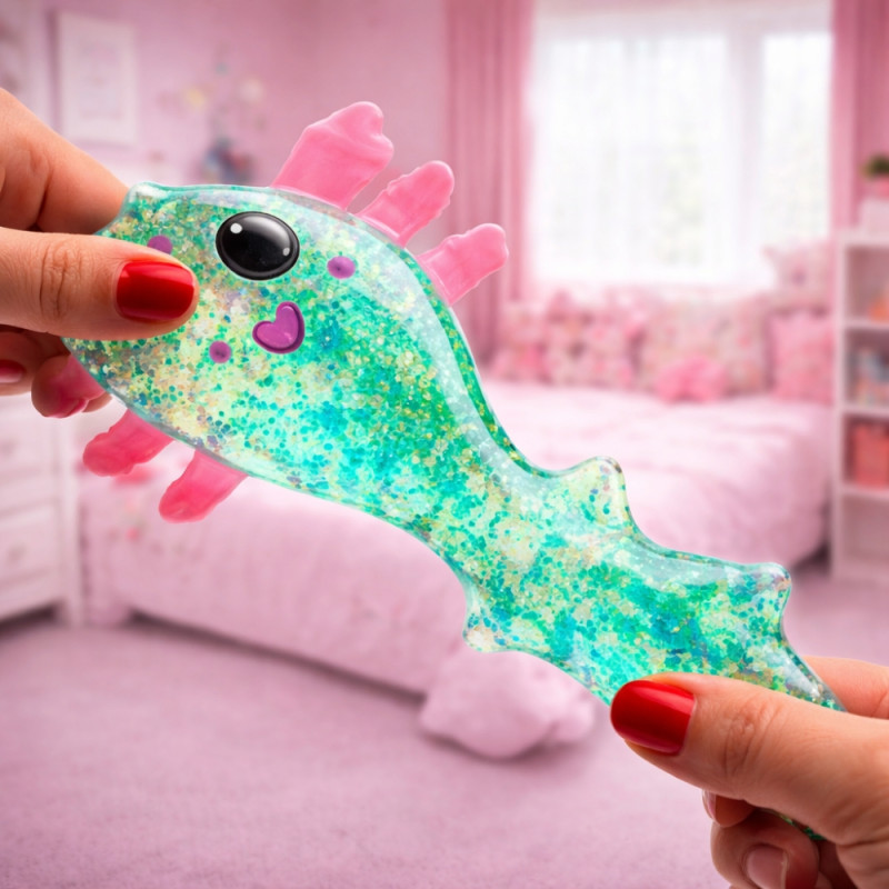 Leur apparence est un véritable coup de cœur. Inspirés de l’axolotl, ces squishies affichent un style kawaii très tendance. Leurs grands yeux brillants et leurs couleurs pastel attirent immédiatement l’attention. Les paillettes intégrées créent un effet visuel fascinant. Ils plaisent autant aux enfants qu’aux adultes. Ce design unique les distingue clairement des autres produits. Ils deviennent aussi des objets fun et décoratifs. Parfait pour offrir ou se faire plaisir. Un produit qui combine utilité et esthétique.