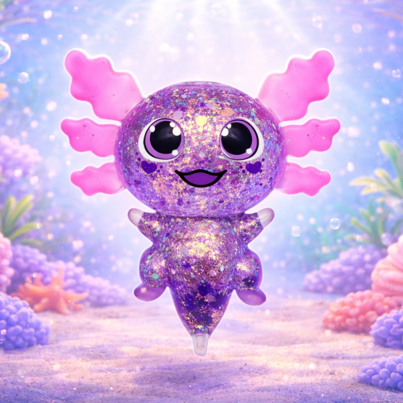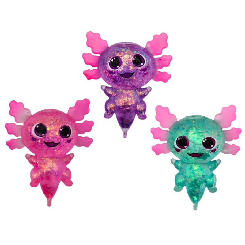 Découvrez le lot de 3 axolotls pailletés, des squishies ultra relaxants au design kawaii irrésistible.