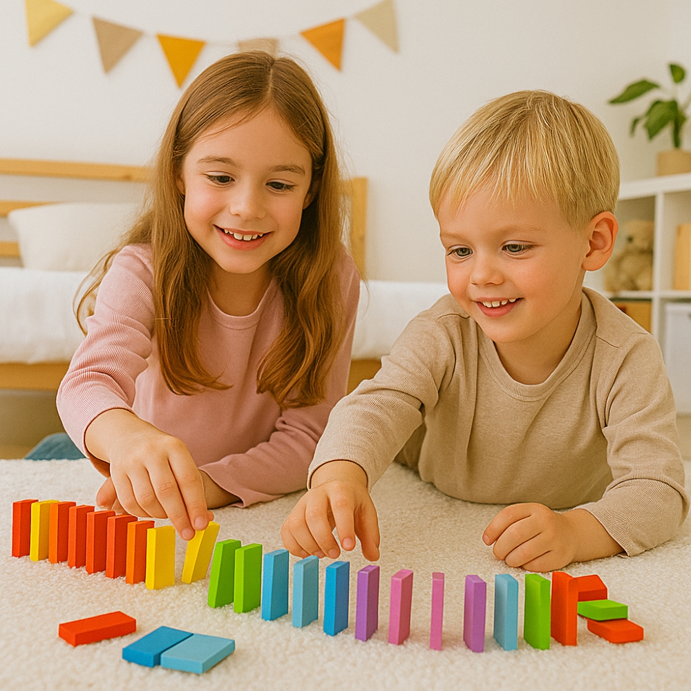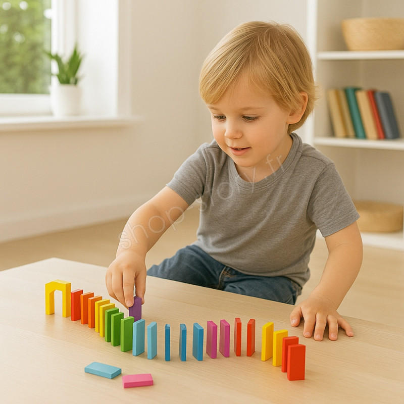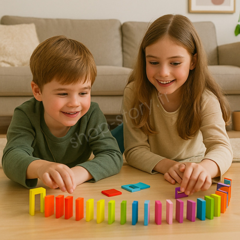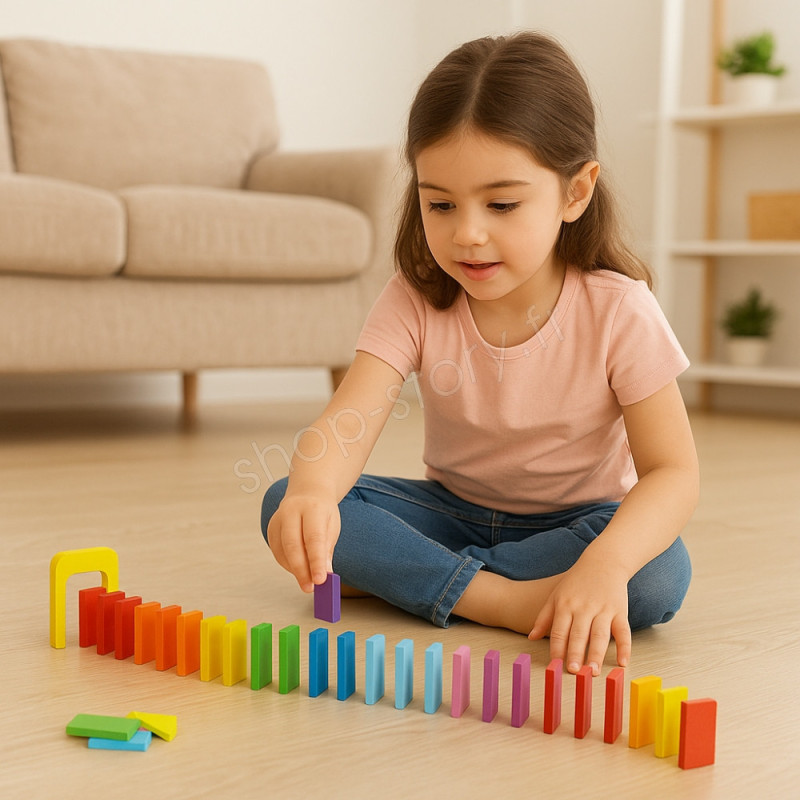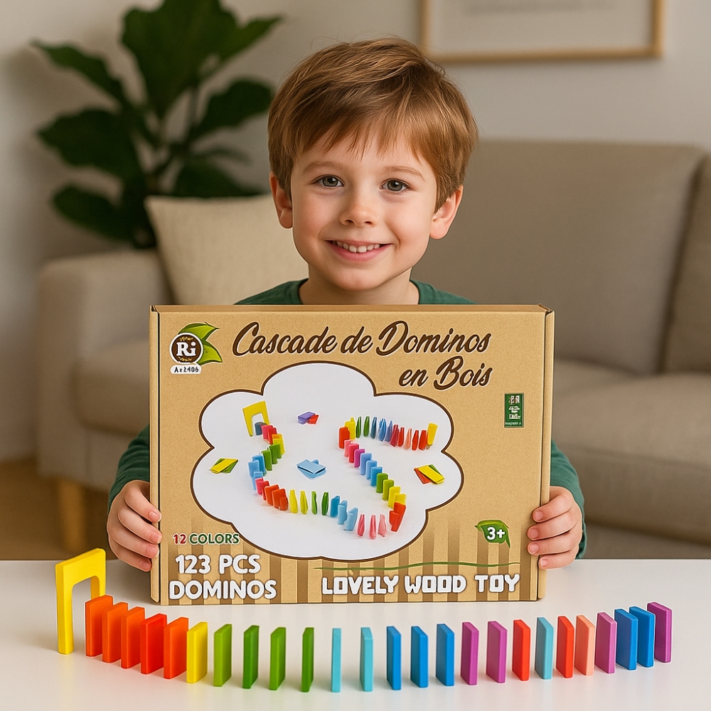 Avec ses 123 dominos en bois colorés, ce coffret ouvre la porte à un véritable monde de construction où chaque enfant peut exprimer pleinement sa créativité. Loin d’être un simple jeu de pièces alignées, il invite les enfants à imaginer des circuits complexes : lignes droites, courbes, spirales, ponts, obstacles, parcours en plusieurs niveaux. Chaque création devient une œuvre unique, une scène miniature où l’enfant peut inventer des scénarios et orchestrer des spectacles visuels.
