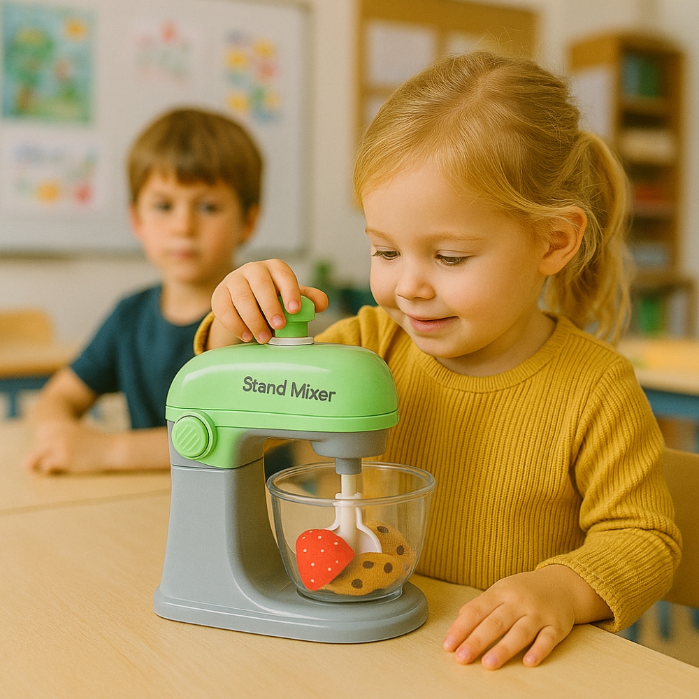 Les détails soignés (boutons, courbes, bol transparent) accentuent cette impression de réalisme, renforçant ainsi le sentiment de “faire comme les grands”.