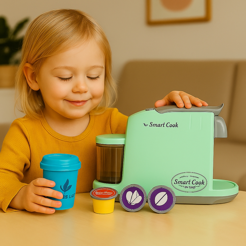 C’est aussi une excellente façon de renforcer leur autonomie et leur confiance en eux : ils apprennent à reproduire des actions précises, à anticiper des résultats (“j’appuie → le café coule”) et à se sentir valorisés par leur capacité à imiter le monde des grands.
