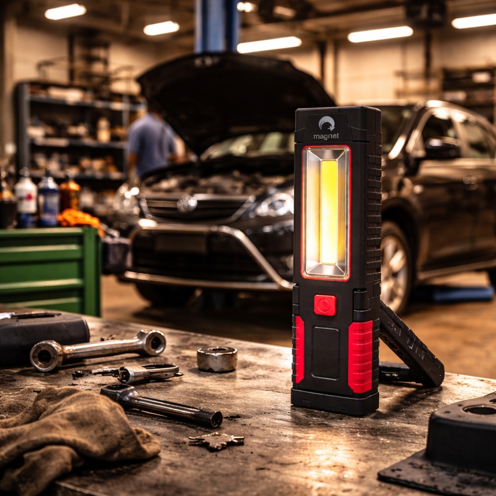 Très pratique dans mon garage. L’aimant tient parfaitement sur la carrosserie et la lampe éclaire vraiment bien. Je l’utilise pour mes réparations et pour bricoler à la maison.