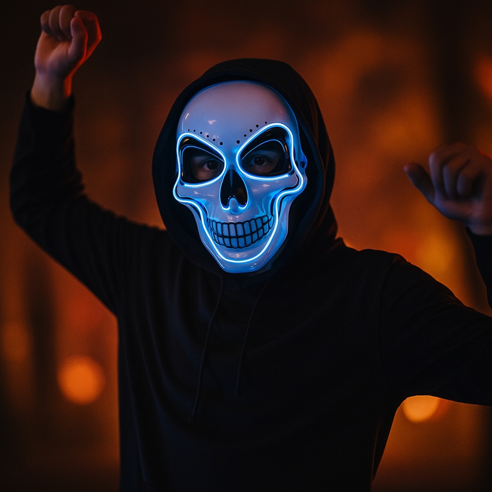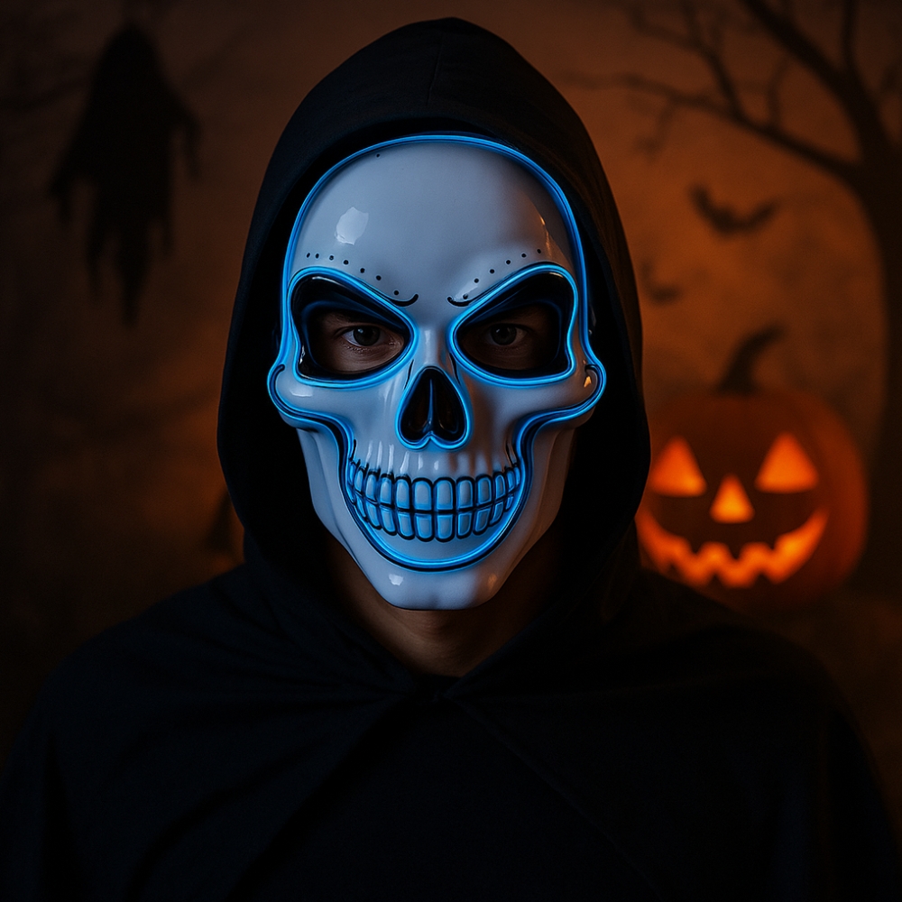 parfait pour Halloween, carnaval, soirées déguisées, cosplay, DJ/soirées club, escape games. Associe-le à une tenue noire, des gants squelettes ou une faux pour un look mémorable. Idéal pour animations commerciales, vitrines et évènements nocturnes.