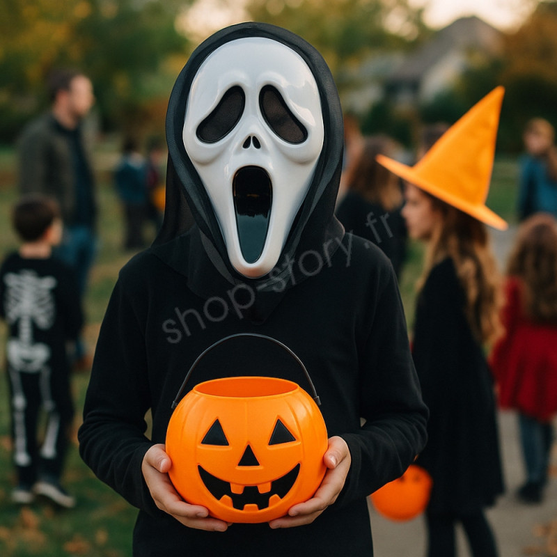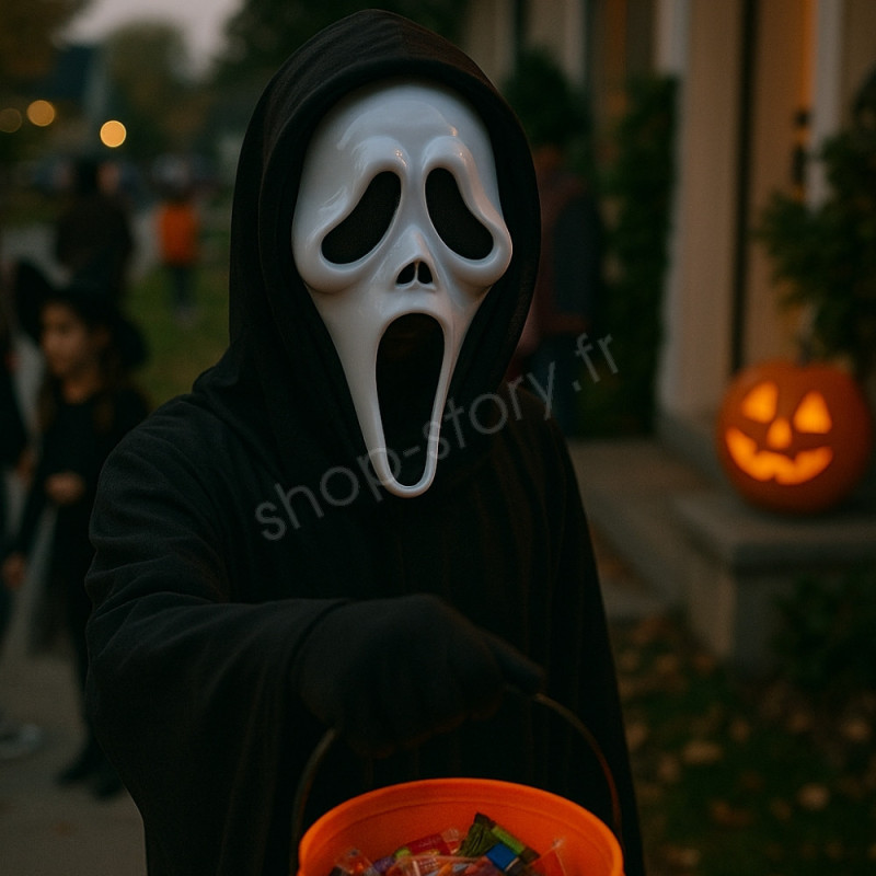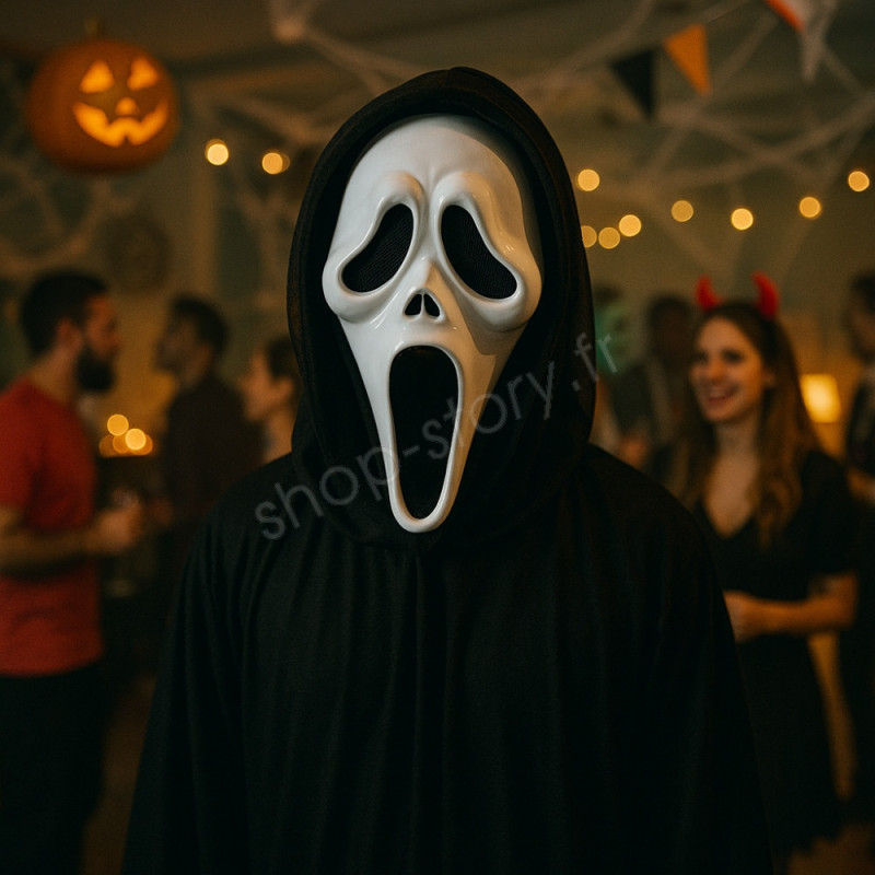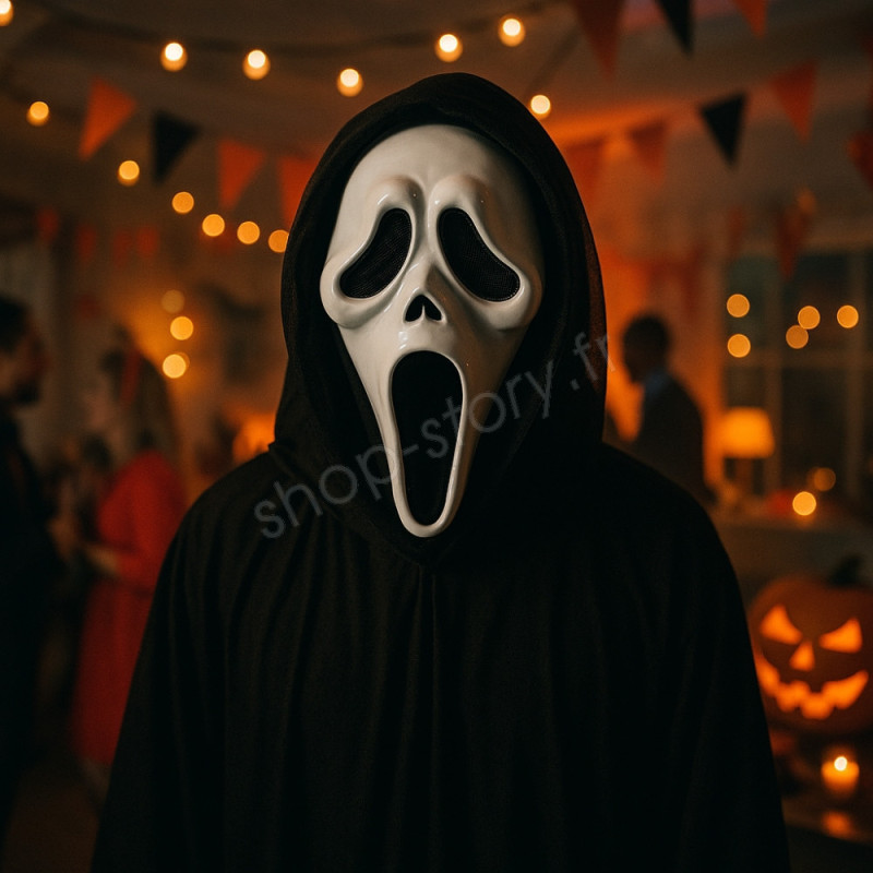 Incarnez l’un des personnages les plus célèbres de l’histoire du cinéma d’horreur grâce à ce masque Scream avec cagoule enfilable. Fabriqué en plastique ABS rigide, il reproduit fidèlement le visage iconique du tueur Ghostface, avec sa bouche béante et ses yeux noirs effrayants.