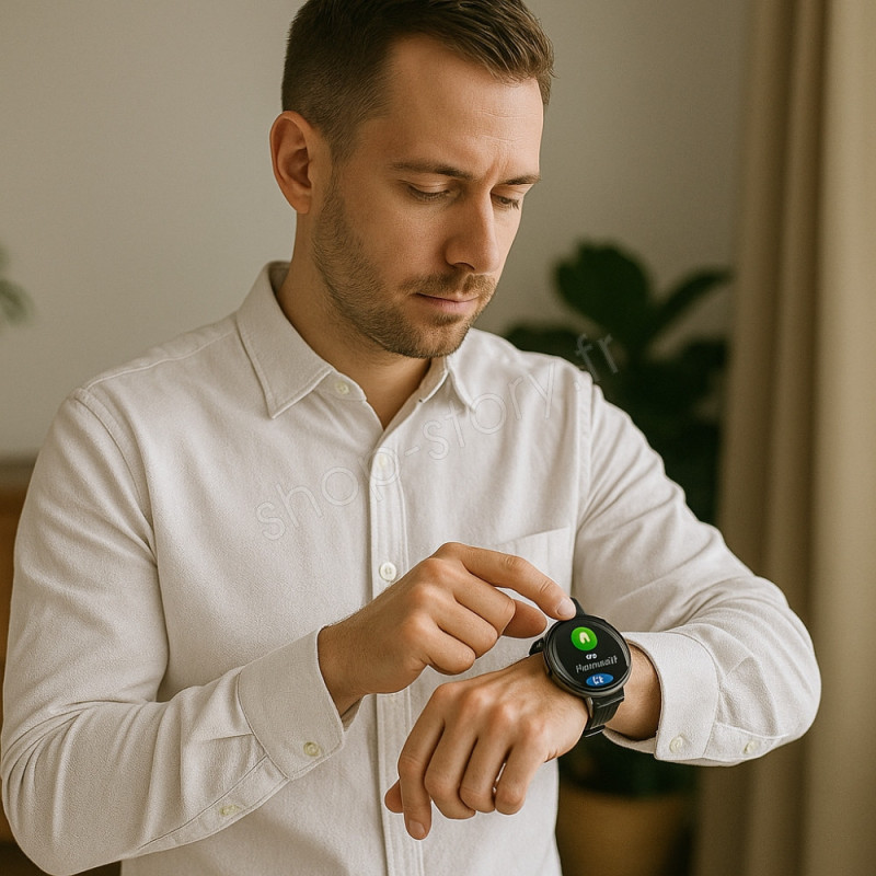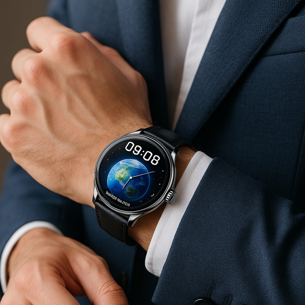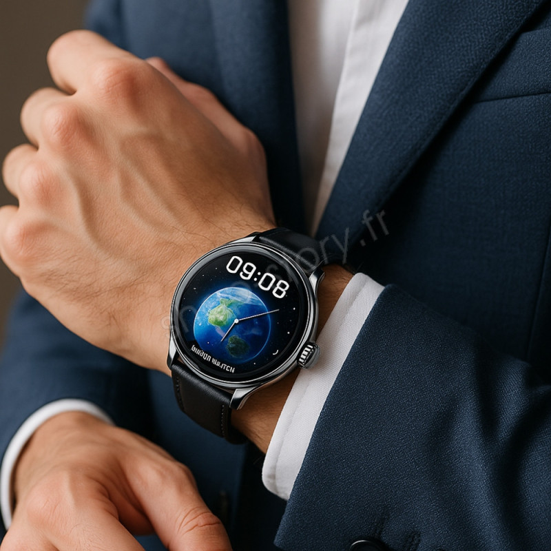 La SMARTINOV se distingue par son design classique et sophistiqué, pensé pour s’adapter à toutes les situations : travail, sport ou détente. Dotée d’un écran tactile HD AMOLED 1.57 pouces (44 mm), elle offre un affichage net, fluide et lisible même en plein soleil. Son boîtier métallique finement poli et son bracelet en cuir véritable lui confèrent un style premium, tout en assurant un confort durable au poignet.