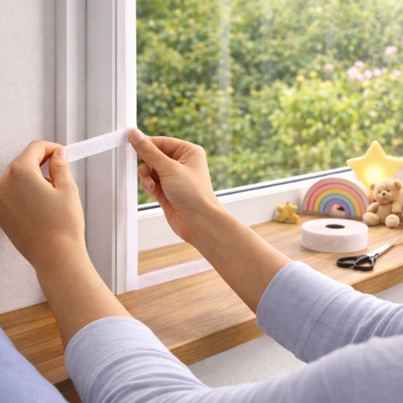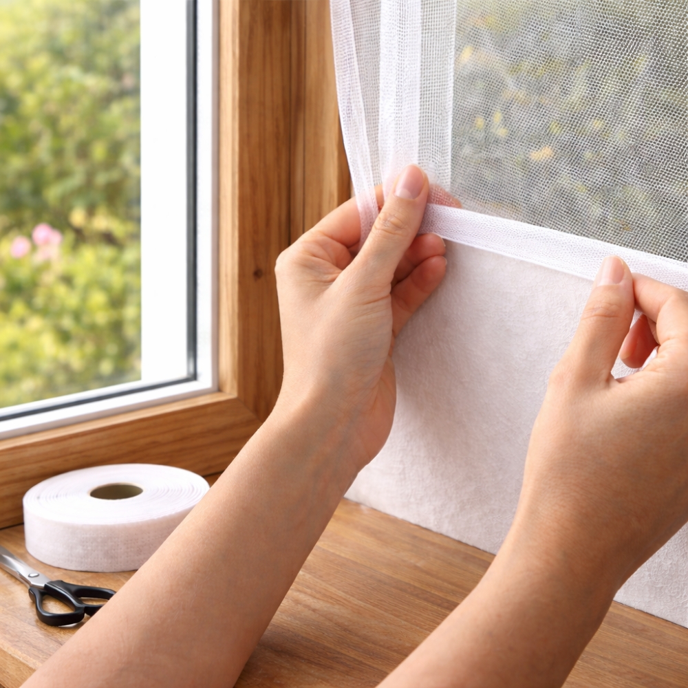 Cette bande scratch auto-adhésive a été conçue pour offrir une installation simple et rapide accessible à tous. Il suffit de nettoyer le cadre de la fenêtre, de découper la bande à la longueur souhaitée puis de la coller directement sur la surface. Aucun outil spécifique n’est nécessaire et aucun perçage n’est requis. Cela permet de préserver l’intégrité des cadres de fenêtres tout en évitant les travaux compliqués. En quelques minutes seulement, la moustiquaire peut être installée et prête à l’usage.