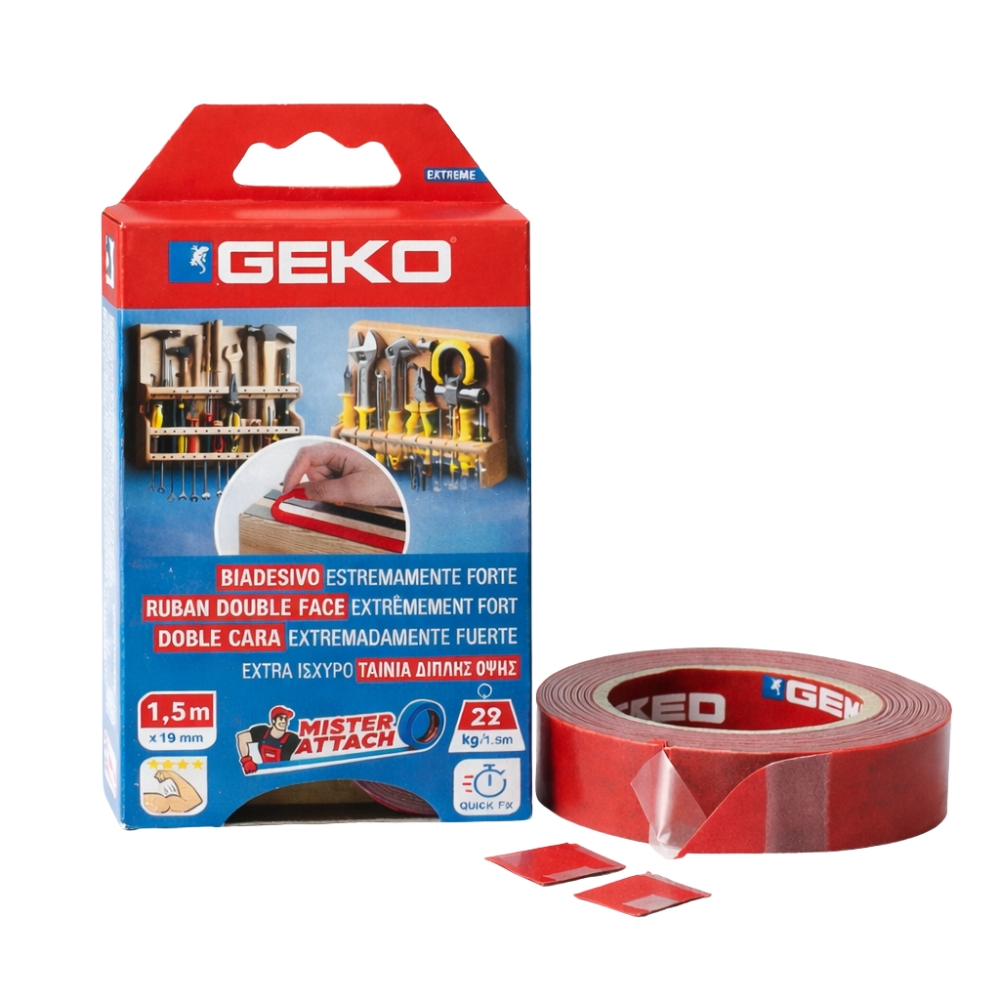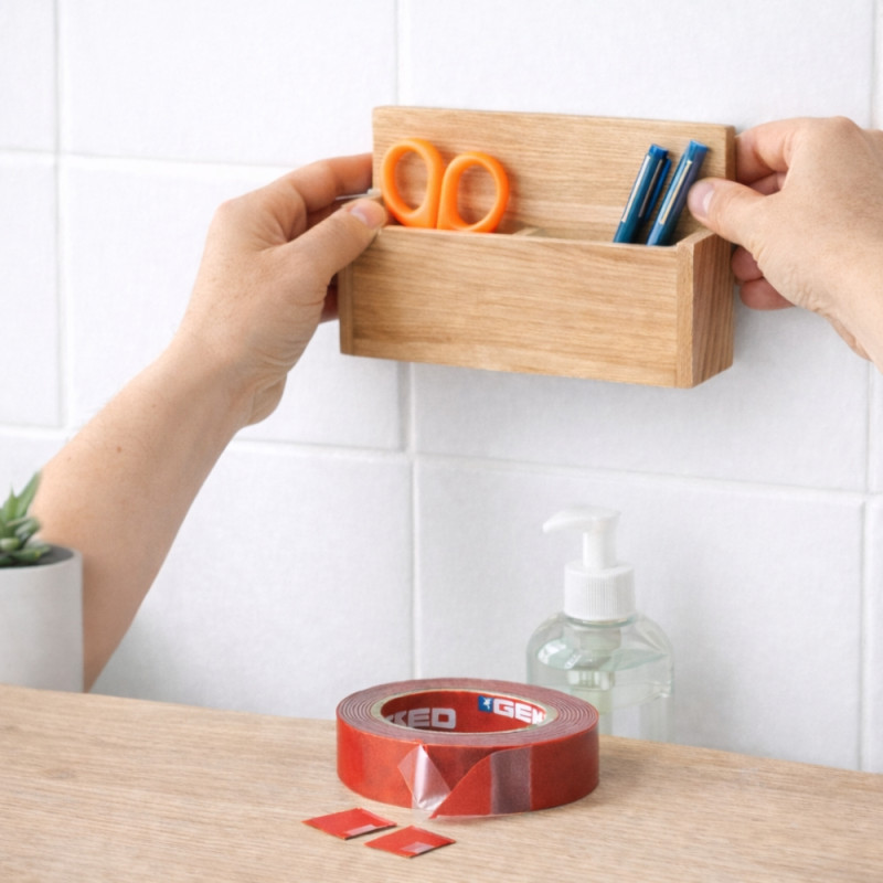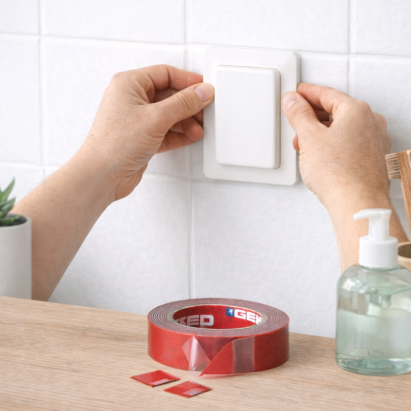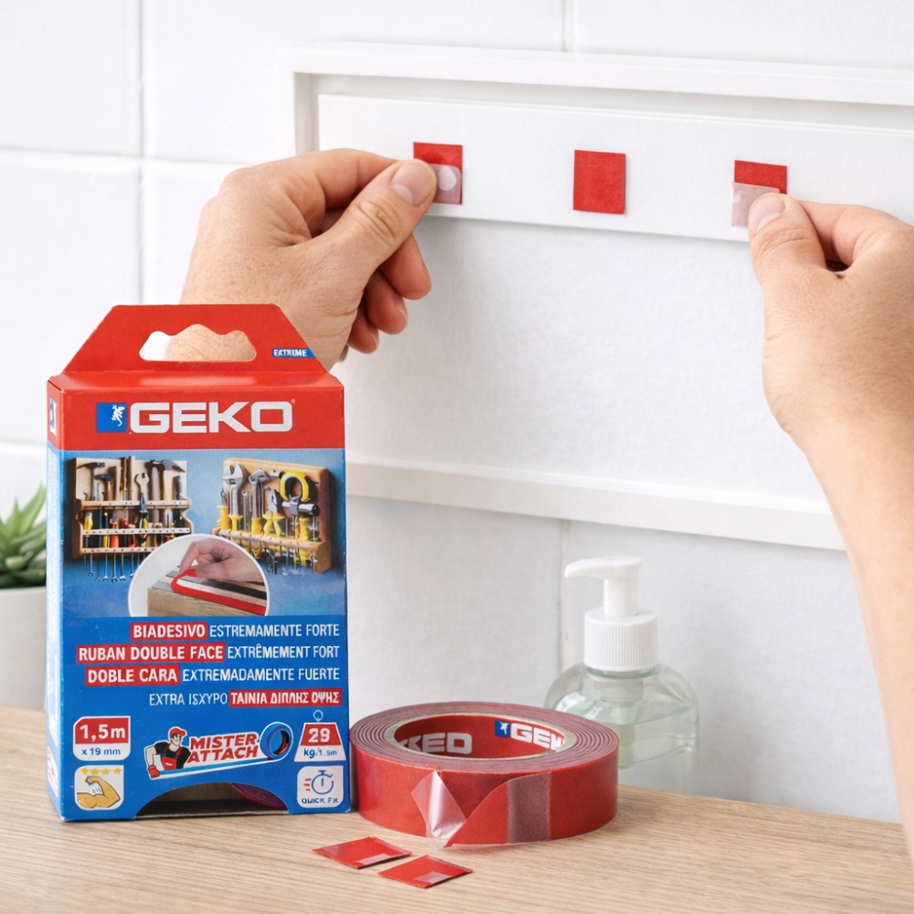 Fixez facilement vos objets sans percer grâce au ruban adhésif double face mousse GEKO. Conçu pour offrir une adhérence extrême, il permet une fixation propre, rapide et durable sur de nombreuses surfaces.