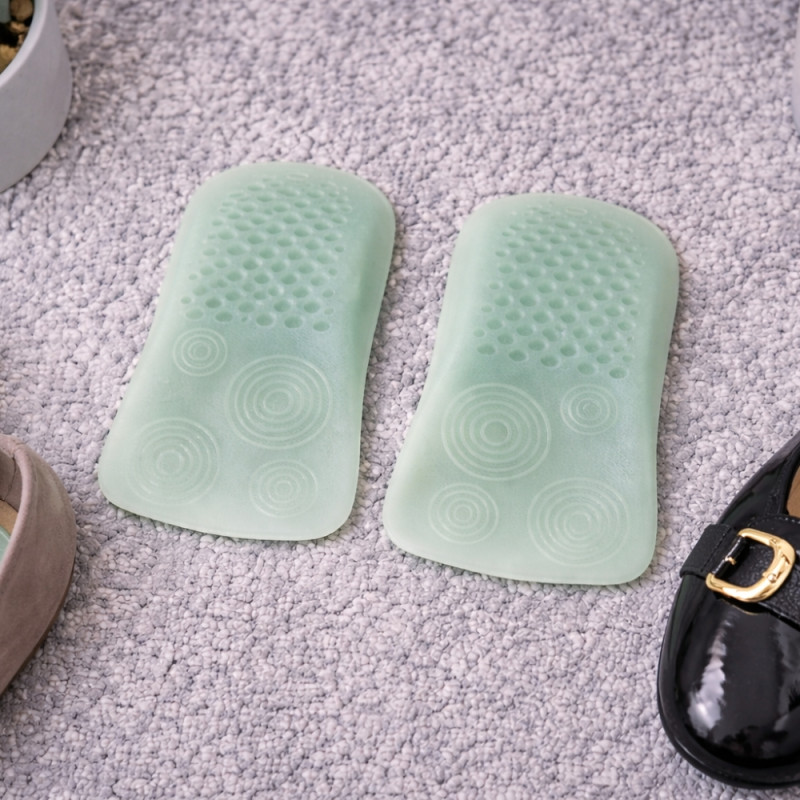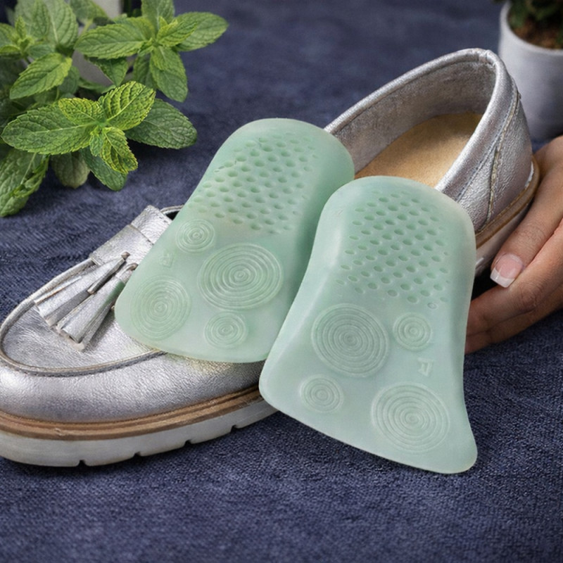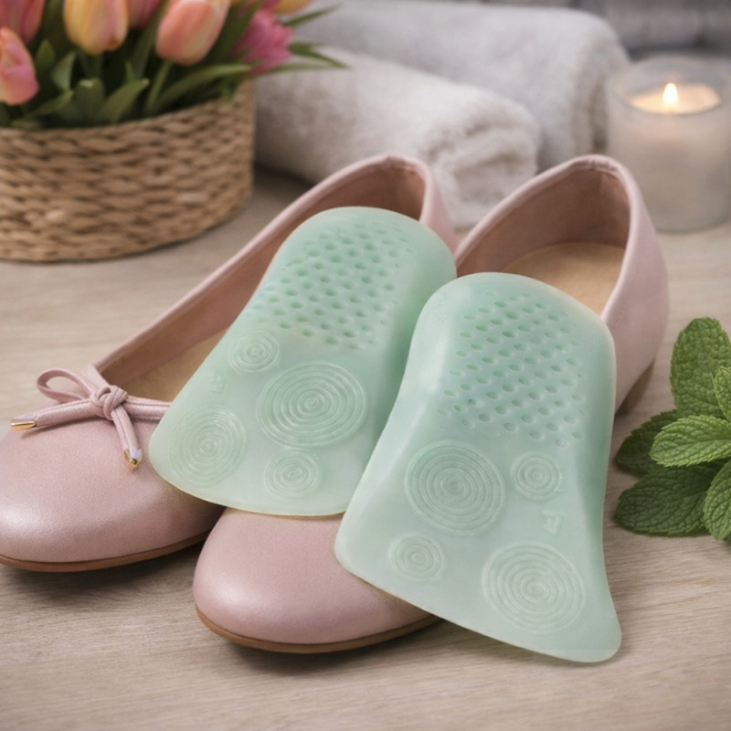 Les demi-semelles Menthogel® offrent un amorti puissant et réactif qui absorbe les impacts à chaque pas. Le matériau SEBS souple et élastique agit comme un véritable coussin protecteur, réduisant efficacement la pression exercée sur le talon, l’avant-pied et les zones sensibles.