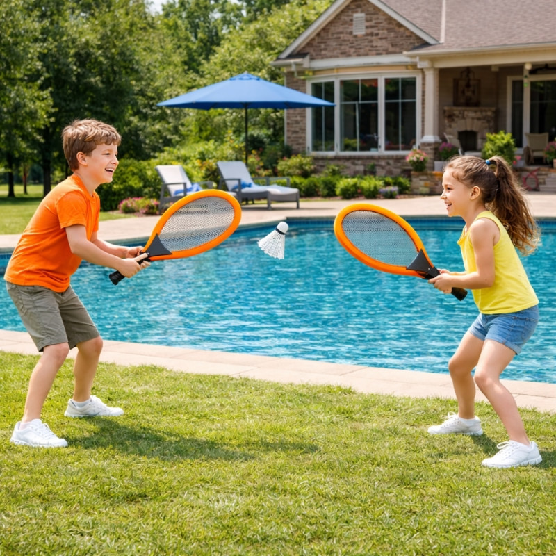 La balle de tennis en mousse souple est conçue pour absorber les chocs et limiter les impacts, rendant le jeu totalement sécurisé. Elle permet aux enfants de jouer sans crainte de se faire mal ou d’abîmer l’environnement autour d’eux. Le volant de badminton, léger et stable, apporte une seconde dimension au jeu : plus aérienne, plus douce et parfaitement adaptée aux plus jeunes joueurs.