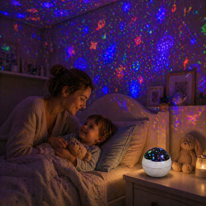 - Réglage de la luminosité : plusieurs niveaux d’intensité pour s’adapter à chaque moment (endormissement, veille douce, ambiance relaxante)